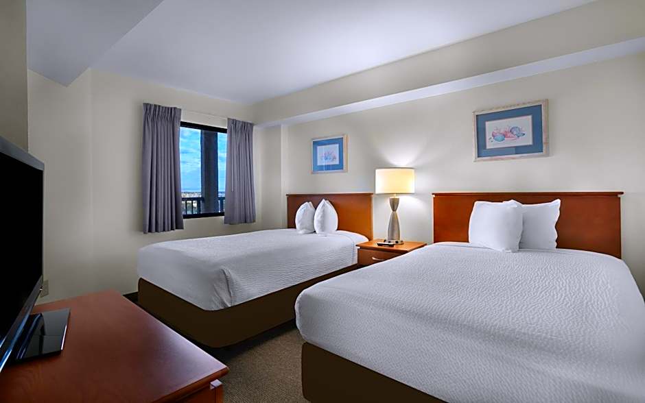 This suite features a balcony with an oceanfront view. A separate seating area with a flat-screen cable television is also included.